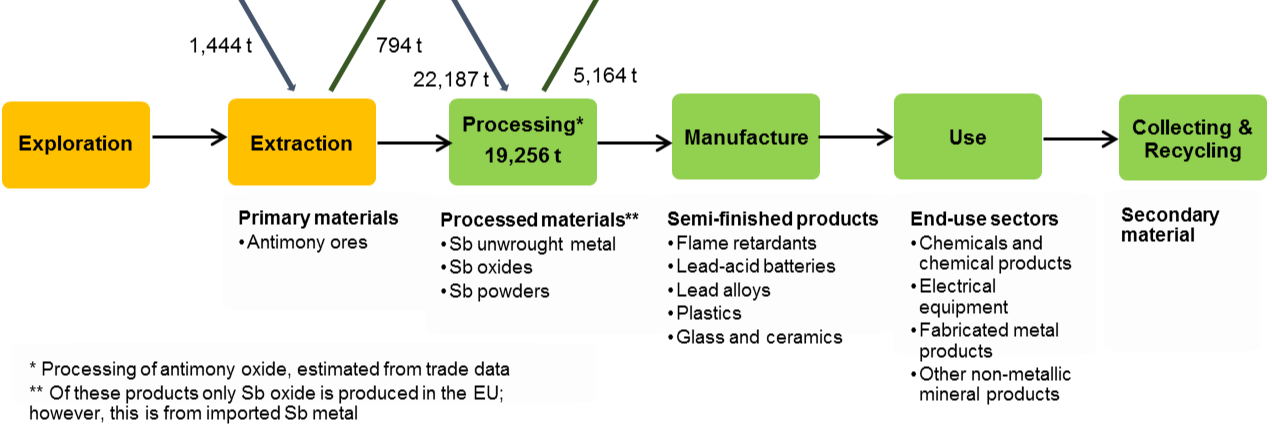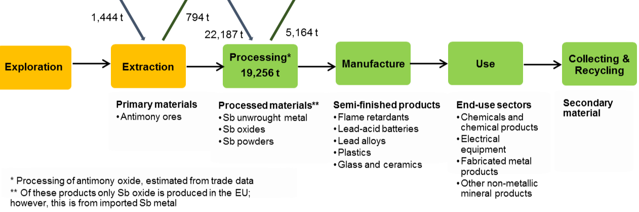 The flows of antimony through the EU economy in 2012 are demonstrated in Figure 10 [BIO Intelligence Service,2015].